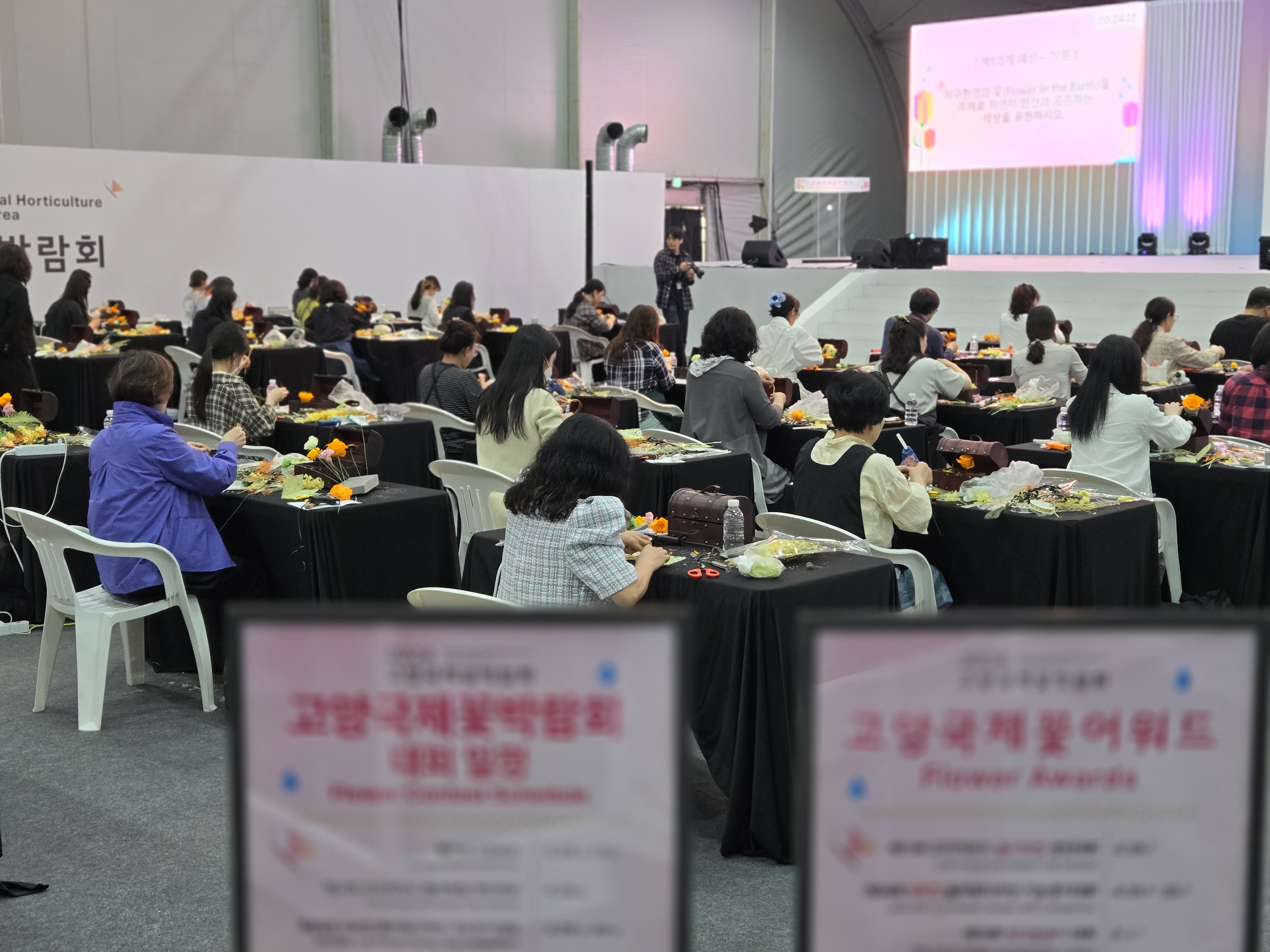 플라워 마켙을 지나 실내전시관으로 진행하였다. 실내전시관에는 세계 여러나라의 화훼작품과 식물을 초대하여 전시하고 있었고, 세계적인 화훼 아티스트의 그랑프리 작품들이 전시되어 있다. 같은 시각에 열띤 화훼경진대회가 열리고 있었다.