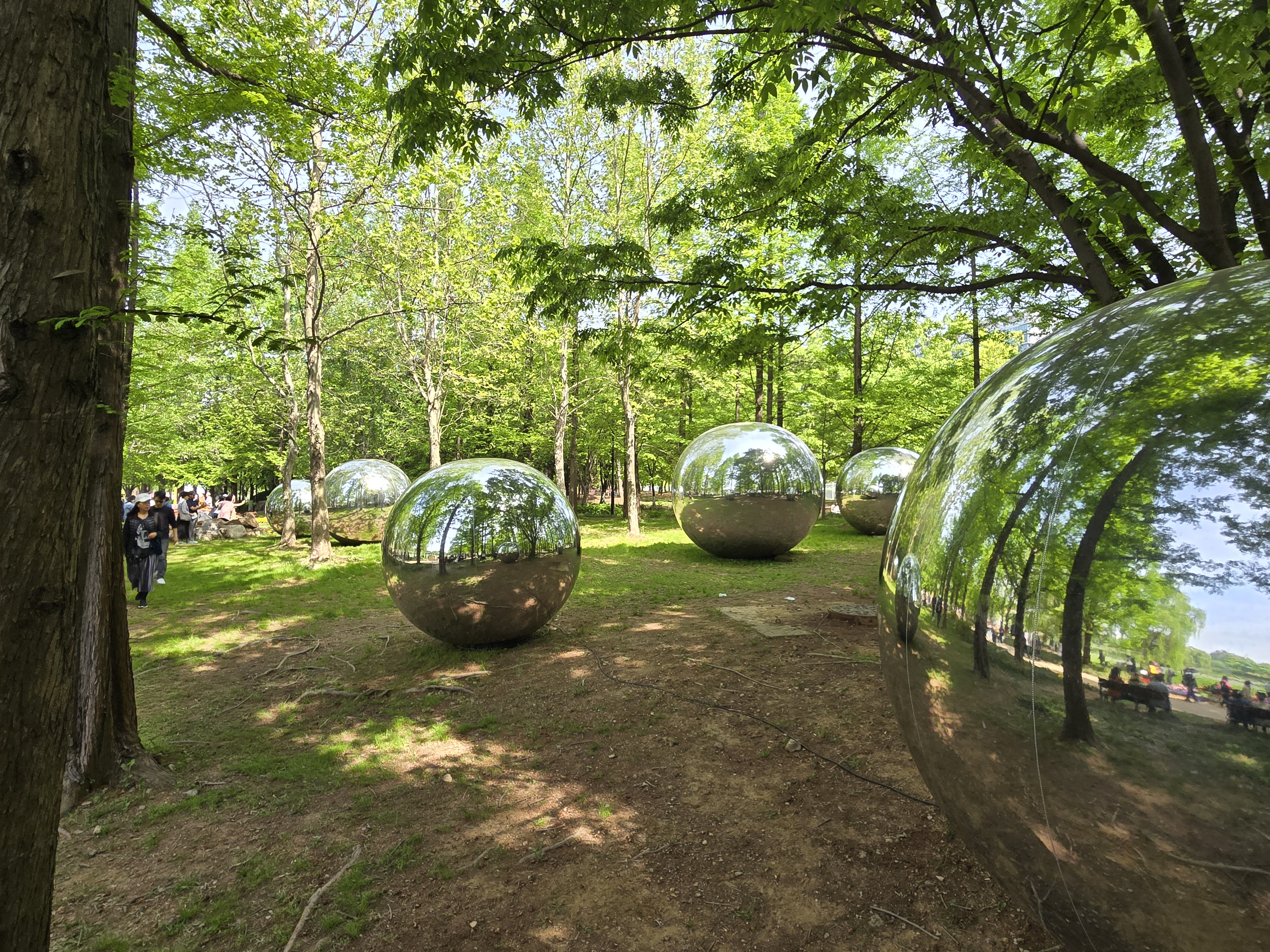 평소에는 개방하는 호수산책로의 4분의 1가량을 이번 행사를 위해 철재 펜스를 설치하여 실외전시장을 꾸민 상태이다. 자유롭게 출입하던 외부 산책로를 유료입장하는 것도 처음이다. 다소 낯설었다.